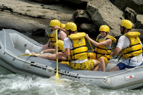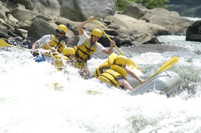 Cap'n Gary and crew in heavy whitewater, fighting to stay in the raft.
